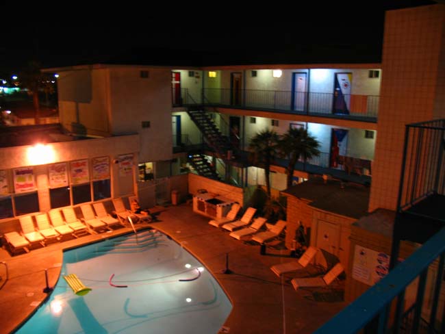 KLIMAT W TYM MIEŚCIE HAZARDU JEST ZABÓJCZY - W DZIEŃ SUCHO I GORĄCO, A W NOCY . . . IDENTYCZNIE, CZUJESZ SIĘ JAK ZAWIESZONY W CIEPŁEJ PRÓŻNI, NIE MA RÓZNICY MIĘDZY TEMPERATURĄ TWOJEGO CIAŁA, A TEMPERATURĄ POWIETRZA. WSZYSCY TRWAJĄ OD KLIMY DO KLIMY - A KAŻDY NAWET NAJPASKUDNIEJSZY HOSTEL MA BASEN. |