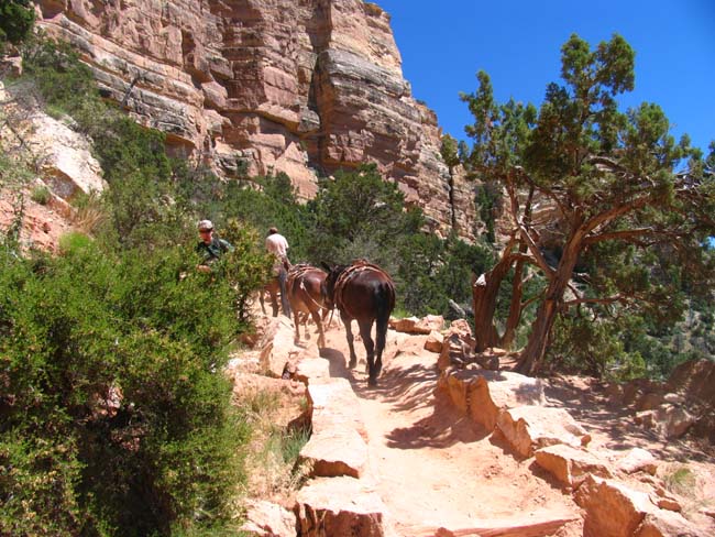 JEDYNA MOŻLIWOŚĆ ZAOPATRZENIA DOLNYCH PARTII KANIONU TO PRZEWIEZIENIE WSZYSTKIEGO NA MUŁACH. JAK TAKI MUŁ CIĘ MIJA TRZEBA NAPRAWDĘ UWAŻAĆ, ŻEBY GO NIE SPŁOSZYĆ, PRZEPAŚĆ MA NADAL 400M....