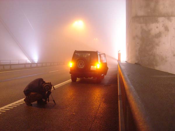 NIELEGALNY POSTOJ NA MOSCIE LACZACYM CHYBA DANIE I SZWECJE (BYLO ICH KILKA I WSZYSTKIE PODOBNE WE MGLE)